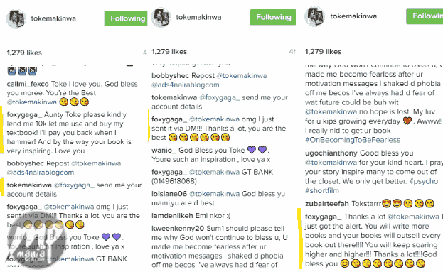 Media personality, Toke Makinwa gifted 10k to her Instagram follower who pleaded with her to assist her with money in order to purchase textbooks.So nice! Date: 2016-12-09 Category: Gist & Gossip Tags: Toke Makinwa