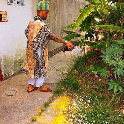 Yes that’s his job, he is a BABALAWO (JUJU MAN). He is also married to a very beautiful woman and has beautiful kids also. Believe you me these pics would wow you and leave your breathless, gasping for air in astonishment.