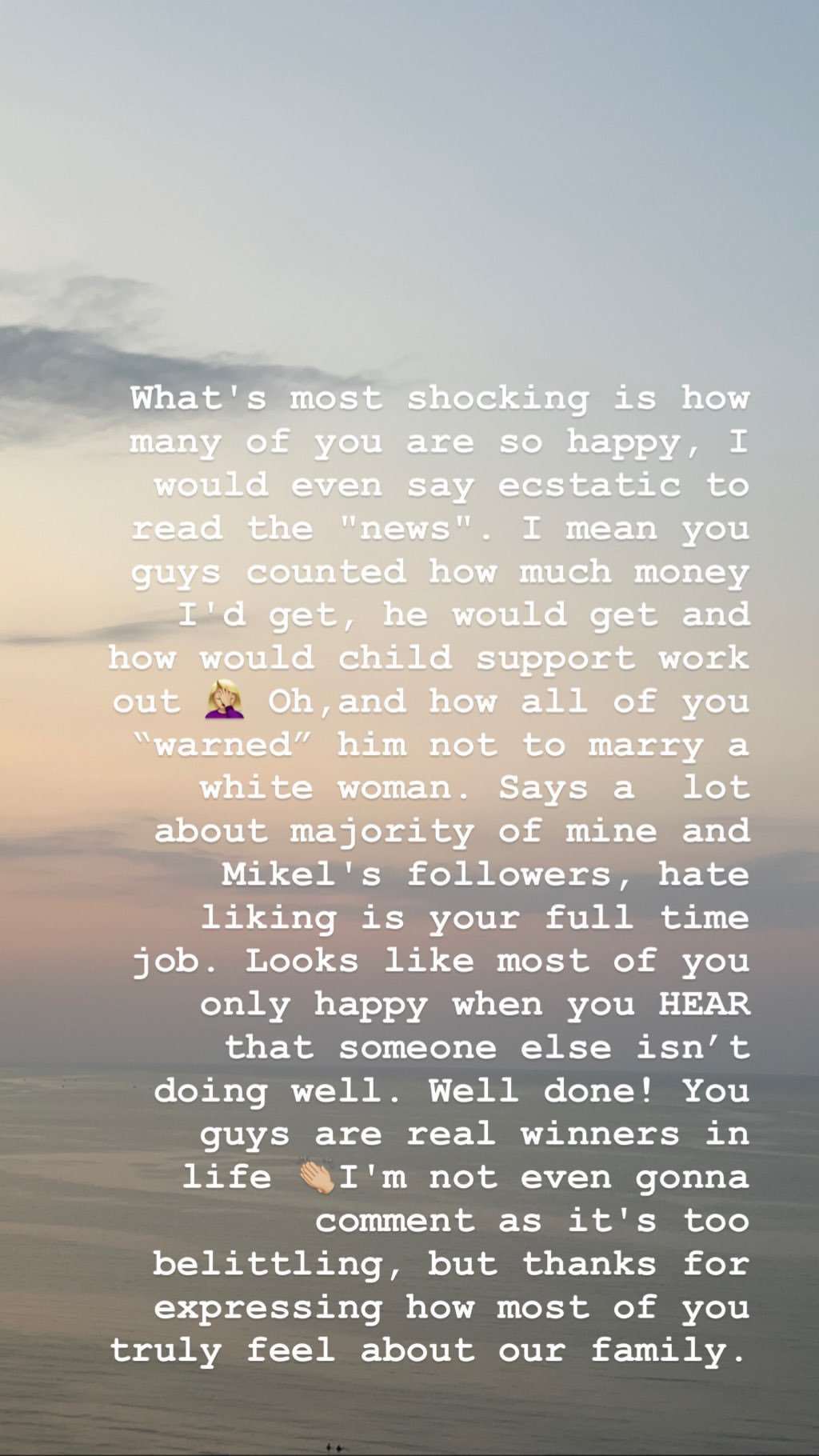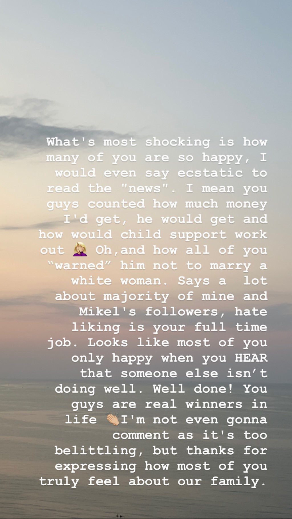 Reacting to the alleged rift, Olga said she was shocked to see people happy about the news, noting that some are waiting to tell Mikel, how he was warned not to marry a white woman.