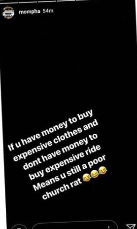 If you have money to buy expensive clothes and don’t have money to buy expensive ride, means you are still a poor church rat