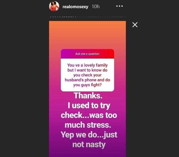 At some point, she used to try and check her husband’s phone but it is too stressful.