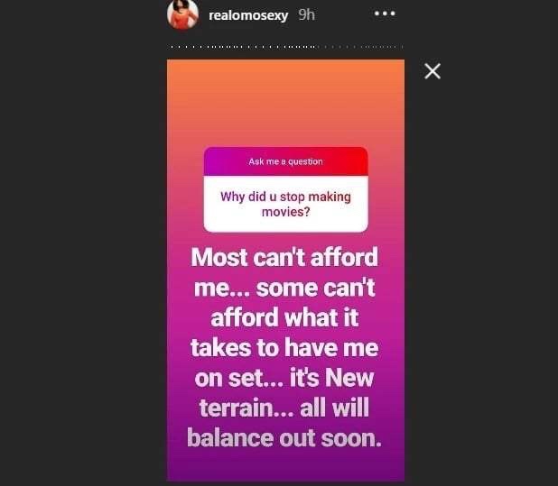 As to why she no longer appears in movies, it is because a number of movie makers cannot afford her.
