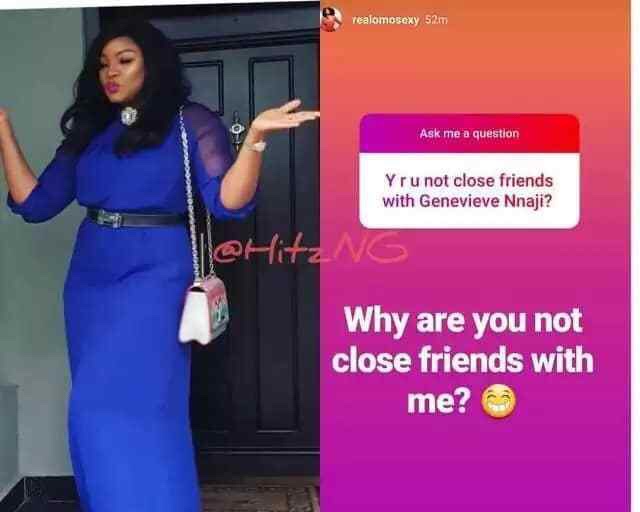 She also gave a cheeky answer when she was asked why she is not friends with her fellow actress Genevieve Nnaji.