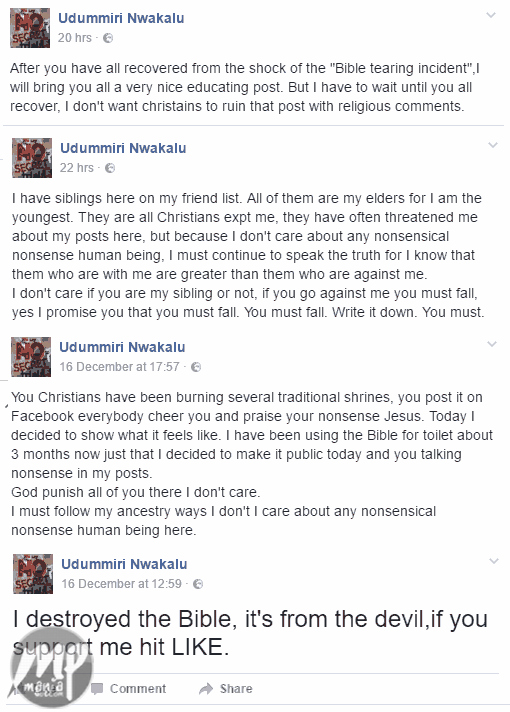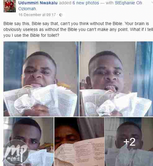 The nerve…..I wish he tries this with other religions though.Read more of his posts defending himself. Date: 2016-12-18 Category: Gist & Gossip Tags: Bible