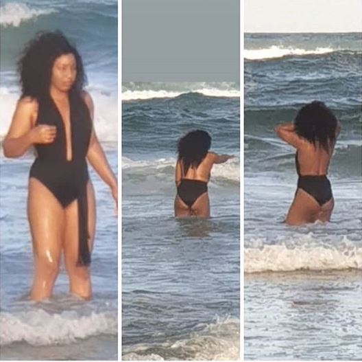 These are trending photos of Rita Dominic cooling off on the beach in far Australia where she is holidaying.