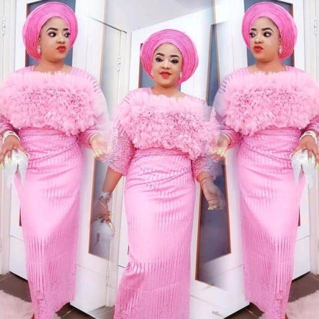 It’s a native attire with the modern ruffled design made at the chest region. The cloth looks every shade of beautiful on her, as she defines elegance with it.