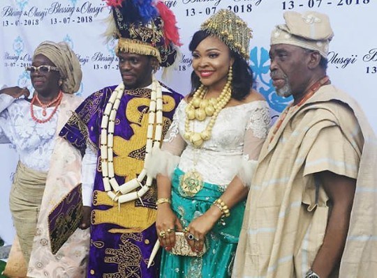 Yesterday’s ceremony was their traditional marriage. The white wedding will take place next weekend in Lagos.