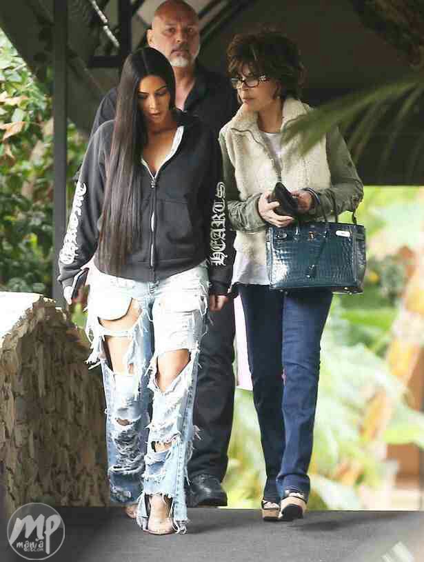 Unlike her usual glamorous self, she stepped out in a casual outfit and severely distressed jeans.