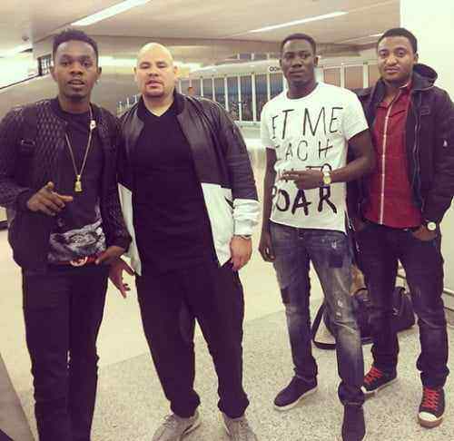 “Nigerian music star, Patoranking who is currently on a music tour in USA met Fatjoe (second from left) USA top rapper in New York yesterday..”
