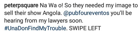 Peter Okoye of defunct Psquare has promised to sue his brother’s Angola show promoter for allegedly using his picture alongside that of his brother to promote their Angola show.