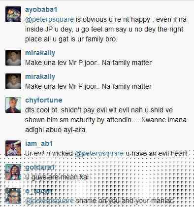 As you all know 17th of July was Jude Okoye and Ify Umeokeke’s traditional wedding, and to our surprise Peter Okoye is absent. If you all can remember, late last year Peter Okoye and long time girlfriend Lola Omotayo tied the knot, and Jude was absent at their wedding but attended that of Paul and Anita Isama in March this year. Is this payback?! Well, Peter let the whole world know that he is chilling with close friends while his brother’s wedding is going on, and his fans are not too happy about it.