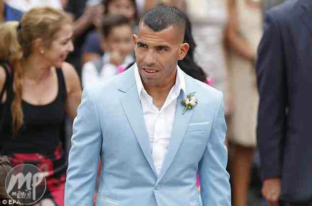 Tevez was pictured wearing a unique light blue suit and white shirt in the provincial district close to the Argentine capital Buenos Aires.