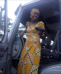 Though many people think she just got into the truck to pose for a photograph with it, someone who know the lady who lives in Ibadan, Oyo State, commented on a social media platform that the woman is real and she is happy doing what she does.