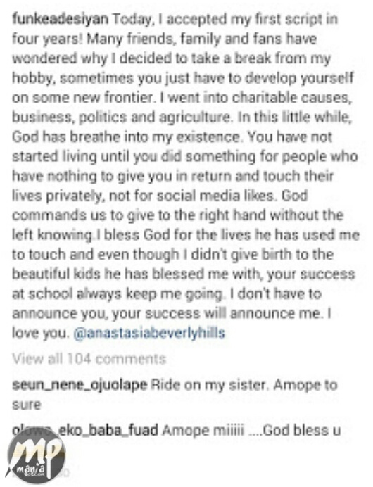 Popular Yoruba Actress Funke Adesiyan Returns To Her Acting Career