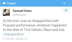 Over the performance, of their Song “Personally” at the Presidential Inauguration, Fans Blast them for not meeting up as expected. Date: 2015-05-30 Category: Gist & Gossip Tags: psquare