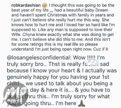 Rapper The Game, reached out to Rob Kardashian on his comment section as Rob lamented about Blac Chyna leaving their home with their daughter,Dream Kardashian.See below Date: 2016-12-18 Category: Entertainment, Gist & Gossip Tags: Blac Chyna, rob kardashian, the game