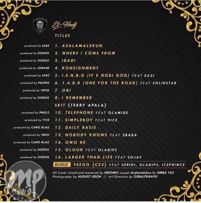 ‘El-Hadj’ accompanies an assortment of jamz burnt underway by any semblance of Pheelz, TMXO, Sossick, Camo Blaiz, Tyce, T-Spize, PBanks, Jomane and Sarz.