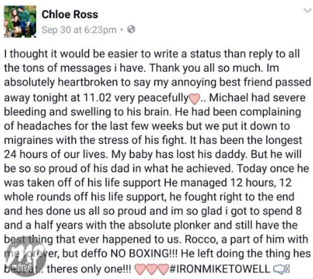25-year-old Mike Towell who was left with severe injuries after being knocked out in the fifth round on Thursday night by Dale Evans has passed away.