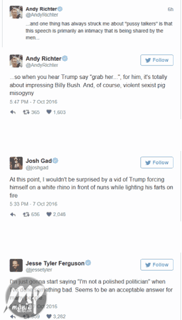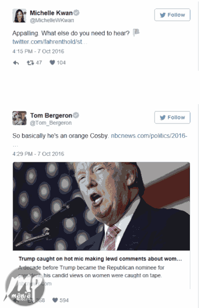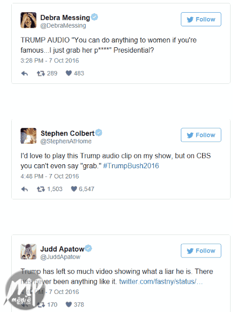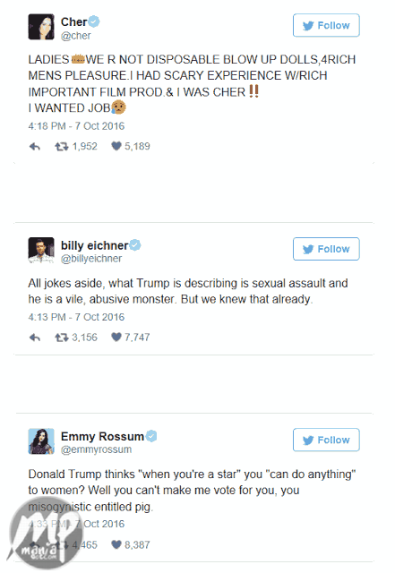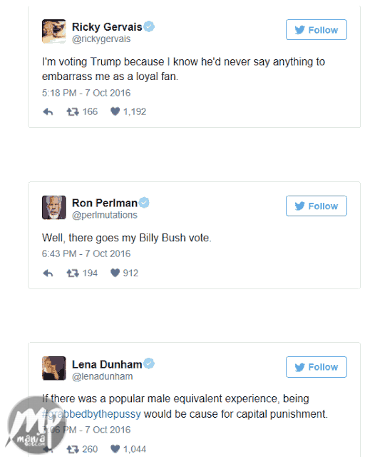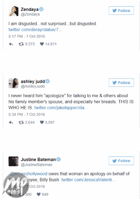 Some Hollywood stars took to Twitter to share their thoughts on the graphic conversation between Donald Trump and Access Hollywood, now Today show host, Billy Bush which was leaked online on Friday which revealed two of them saying vulgar things about women.
