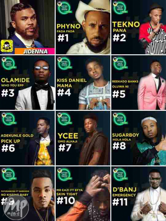 MTV Base Africa has released its top 20 hottest tracks of 2016 and Phyno’s Fada Fada is number one with Tekno’s Pana at no 2.Agree? Date: 2016-12-18 Category: Gist & Gossip Tags: mtv base