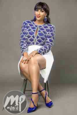 Styled by Celebrity Stylist Jeremiah Ogbodo aka Swanky Jerry, the movie star who keeps upping her style game is gorgeous in a blue beaded top with a white skirt, accessorized with blue shoes and blue earrings.