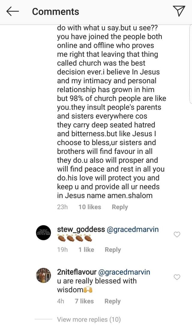 well thank you for insulting my sisters but it is up to them to make the right choices and it has nothing bto do with what u say.but u see??you have joined the people both online and offline who proves me right that leaving that thing called church was the best decision ever.i believe In Jesus and my intimacy and personal relationship has grown in him but 98% of church people are like you.they insult people’s parents and sisters everywhere cos they carry deep seated hatred and bitterness.but like Jesus I choose to bless,ur sisters and brothers will find favour in all they do.u also will prosper and will find peace and rest in all you do.his love will protect you and keep u and provide all ur needs in Jesus name amen.shalom