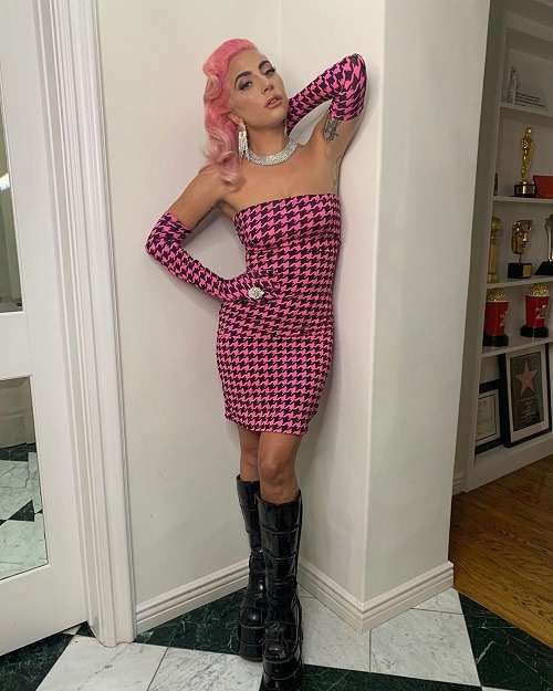 Gaga took to Instagram to share her latest fit, where she was fully decked out in a pink coloured dress and hair paired with a choice footwear to give us a gothic look with a twist.