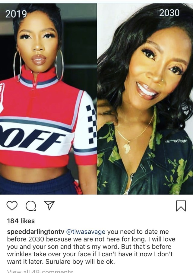 @tiwasavage you need to date me before 2030 because we are not here for long. I will love you and your son and that’s my word. But that’s before wrinkles take over your face if I can’t have it now I don’t want it later. Surulere boy will be ok.