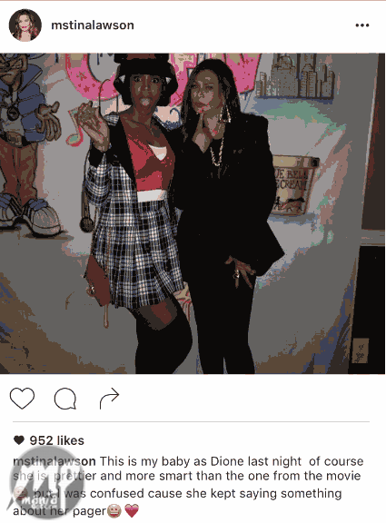 “This is my baby as Dione last night of course she is prettier and more smart than the one from the movie but I was confused cause she kept saying something about her pager.”