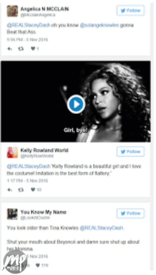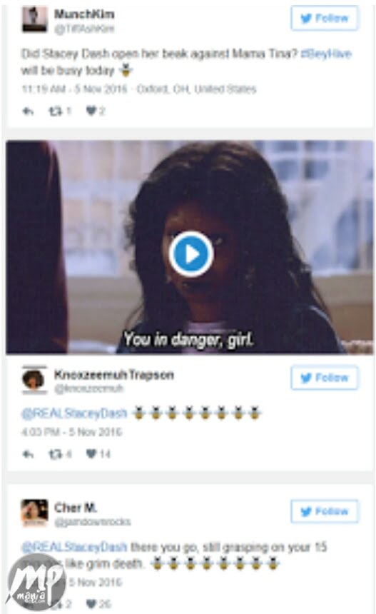The Beyhives weren’t having any of Stacey’s disrespect of their queen’s mother, so they descended on her.