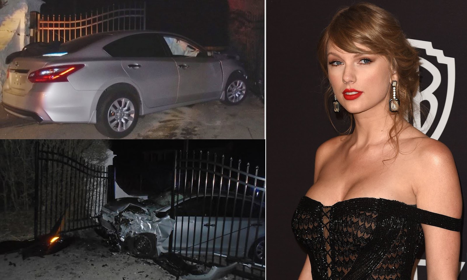 Grammy award-winning Taylor Swift was once again the host to another unwanted visitor at her Rhode Island home when a police pursuit ended with a stolen car smashing into her front gate.