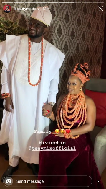 Music producer Tee-Y Mix and Ivie Ogbonmwan, an HR consultant yesterday, August 24th tied the knot traditionally.Here are few photos from the ceremony as we await official photos. Big congrats to the couple! Date: 2019-08-26 Category: Gist & Gossip Tags: Ivie Ogbonmwan, Tee Y Mix