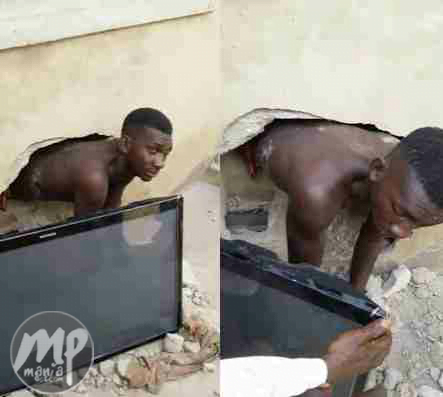 This thief was caught after he broke into the wall of a home to steal a Plasma TV.He was coming out of the wall with the TV when he was apprehended.This is just crazy! Date: 2016-11-20 Category: Gist & Gossip