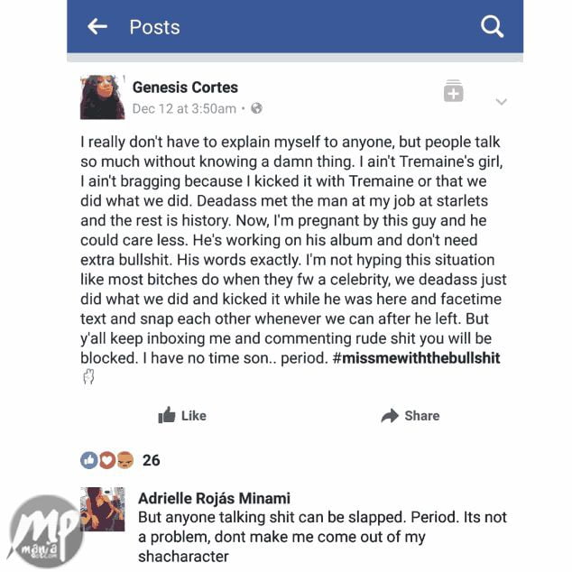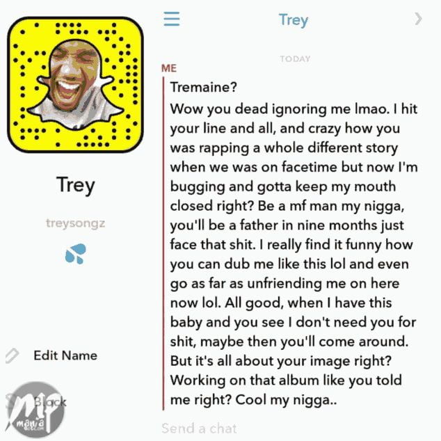 Anyways, that same page just spilled tea, leaking a DM allegedly sent from Genesis Cortes. In the message, the woman claims to be PREGNANT with Trey’s baby and is upset that he’s trying to SWERVE her.