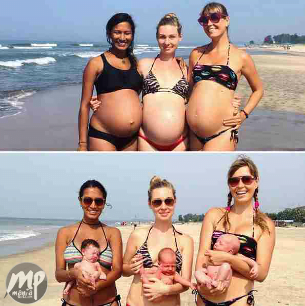 In this viral photo, three friends rocked the same bikinis, and posed at the same beach they had earlier visited when they were heavily pregnant. Date: 2016-12-07 Category: Gist & Gossip