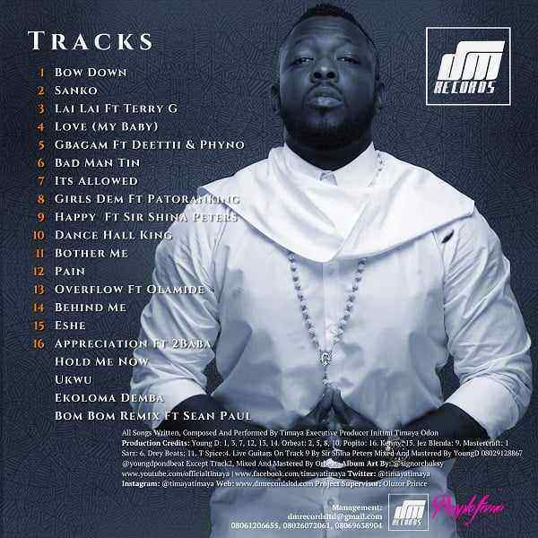 “Timaya CEO of DM Records is set to drop his 5th studio album titled “Epiphany ‘ on the 25th of this month.The album has 16 tracks and 4 bonus tracks including hit singles like Hold Me Now , Ukwu , Ekoloma Demba and Bom Bom Remix Featuring Sean Paul.