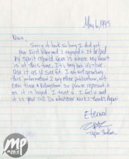 In the letter, Tu Pac promises to drop another album, “not 4 me but 4 the homeiz,” adding “It will shake the world!”