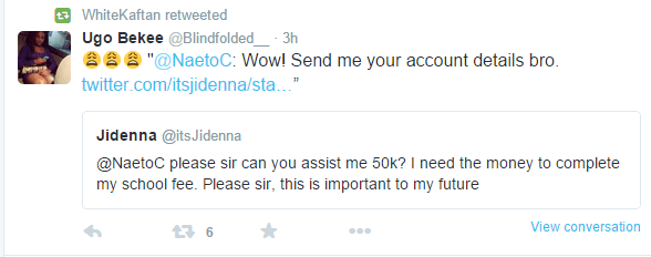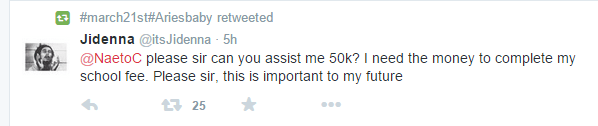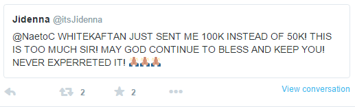 This is more than amazing. A twitter follower of Naeto C begged him for N50,000 to pay his school fee. Guess what, Naeto C sent him a whopping N100,000 instead of the N50,000 he asked for.