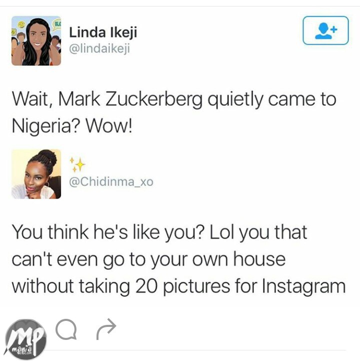 However as Linda commented on silent Zuckerberg visit was, a fellow twitter user replied in a no Chill fashion that’s fast becoming customary of Nigerians.