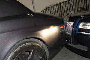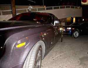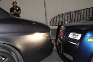 In a not-too-serious accident, Tyga damaged the back of his Rolls Royce worth about three hundred and twenty thousand U.S Dollars as the couple were about leaving 1Oak nightclub in Los Angeles.
