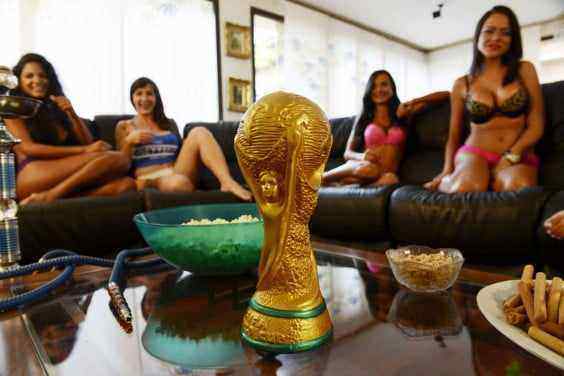 The presenters often begin reading the latest news from the World Cup in their underwear, before gradually beginning to simultaneously undress.
