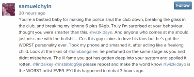 In addition to this, Wizkid allegedly also broke a window in the Dubai Night club, in his rage, forcing Dubai police to shut down the club temporarily, ruining the fun for the night crawlers present at the party.