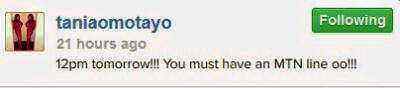 However, the question is, Why MTN line? Is Tania an MTN ambassador? (if she is, we need to question MTN on the criterias of signing people as ambassadors) or her new boyfriend works with MTN or she’s trying to attract MTN (probably for a future deals)?