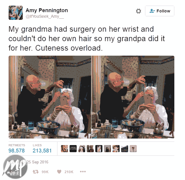 Aww. So cute how the grandma is taking selfies with her phone while he does her hair.Now, this is love! Date: 2016-09-29 Category: Gist & Gossip