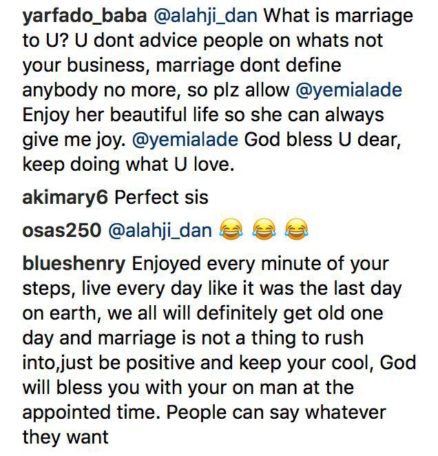 Yemi Alade shared a video of herself dancing to her song “Elele.” A cheeky fan then took to the comment section, advising her to get married as she’s getting old.