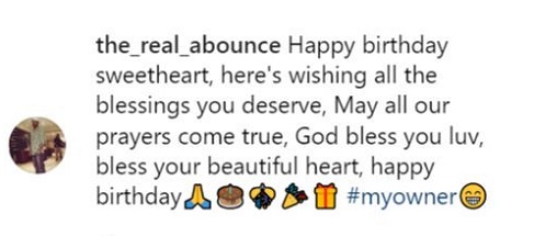It was Bimbo’s birthday yesterday, and Abounce took to Instagram to wish her a happy birthday calling her love, sweetheart and my owner.
