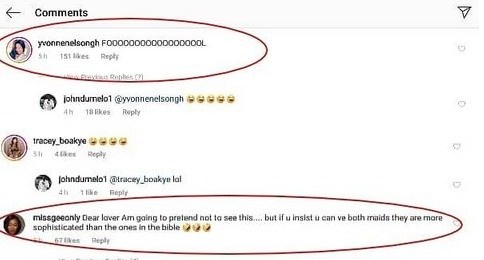 Ghanaian actress Yvonne Nelson has insulted John Dumelo over a post the actor shared on social media.