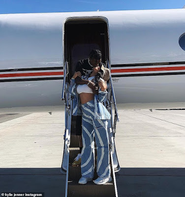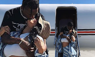 The parents of baby Stormi Webster were travelling in style, seen sharing a passionate kiss while on the steps of a private jet in a social media picture shared Saturday.