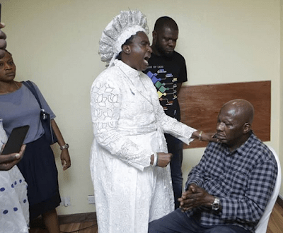 Ailing Nollywood actor, Babatunde Omidina- Baba Suwe has paid a courtesy visit to Reverend Esther Ajayi who gave him N10m for his treatment abroad.