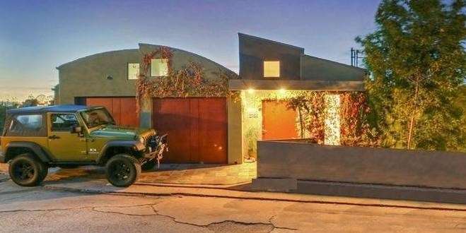 Variety.com reported that the front door opens to a brief landing with a vaulted ceiling and poofy chandelier before a stairway leading down to the multi-level public rooms. There’s a long hallway that’s been outfitted as a uniquely-styled office with hillside views and custom cabinetry, and a combination family/dining room space with high ceilings, blonde-hued hardwood floors and glass sliders leading to a balcony. The adjacent kitchen is rather narrow but upgraded with bar-style seating, a backsplash of white-painted brick and full array of stainless appliances.